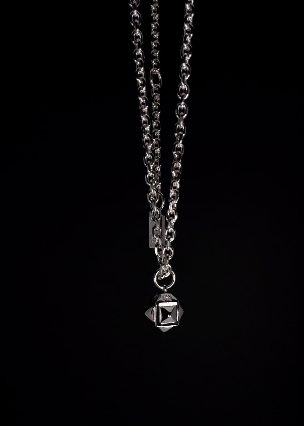 The “Almo” necklace, short after the Spanish word almohadillado (“Bossage” in English), takes its inspiration from the textured stone pyramid accents, or bugnatos, as seen on Renaissance building facades in Italy. These architectural details have always fascinated me for the way they enhance the presence of a structure, while also transforming its appearance as sunlight shifts throughout the day. I reinterpreted these elements into a contemporary, symmetrical pendant—chunky, heavy, and designed for modern everyday wear.
